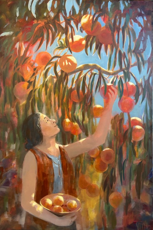 This collection of paintings is made in celebration of the bounty that plants give us. Each piece of fruit is a gift that helps to nourish and sustain us. When we care for the plants they in turn care for us. This idea is inspired by the book, "The Botany of Desire," that explores the ways in which plants and humans have a symbiotic relationship.